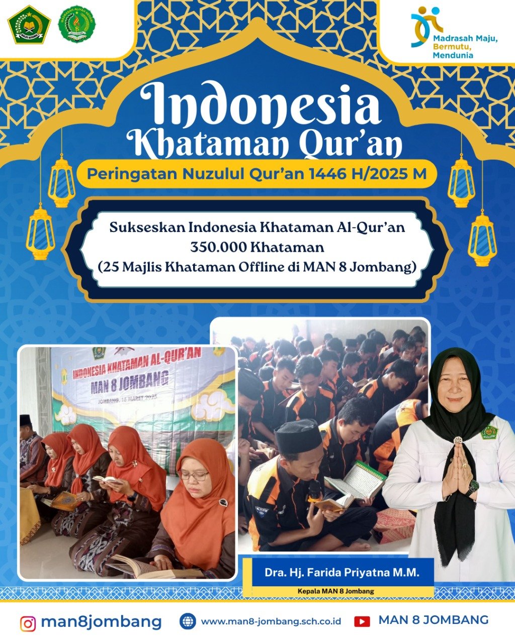 Kegiatan khataman Al-Qur’an di MAN 8 Jombang diharapkan dapat menjadi tradisi yang terus dilaksanakan setiap tahun sebagai bagian dari upaya sekolah dalam membentuk generasi yang berkualitas, baik secara akademik maupun spiritual.