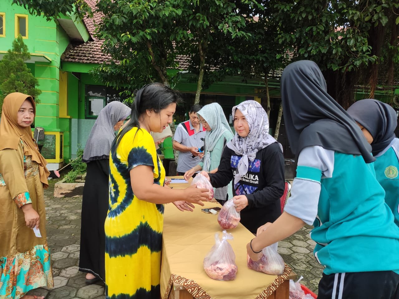Daging qurban kemudian dibagikan kepada masyarakat sekitar yang membutuhkan serta kepada seluruh warga madrasah. Proses pendistribusian dilakukan dengan tertib oleh panitia qurban yang terdiri dari guru dan siswa yang telah ditunjuk sebelumnya.